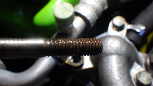 エンジン側はタップを当ててねじ穴をきれいにしておきます。