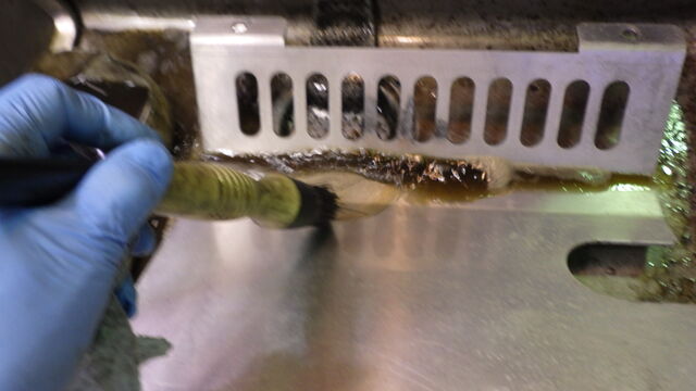 ヘッド側の汚れを清掃します。GKのあたり面はオイルストーンで研磨します。