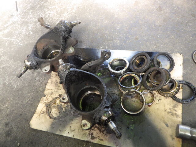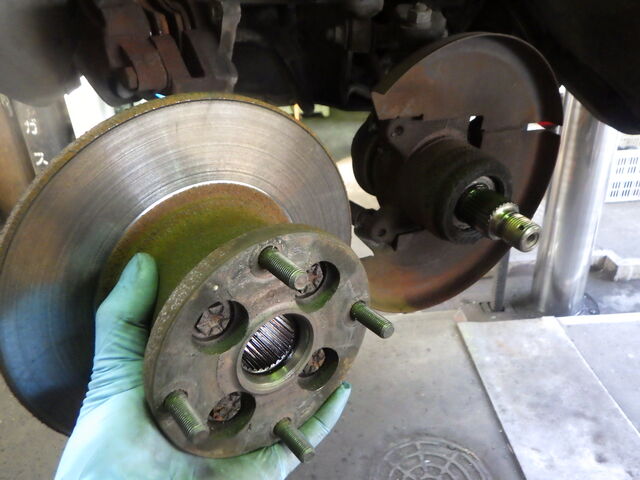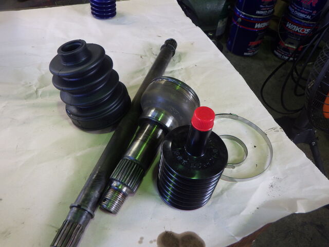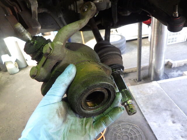 続いて、フロント足回りを外してドライブシャフトを摘出。