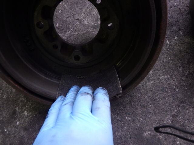 ドラムのバックプレート下部に付いているブレーキレバーアーム回りの四角いゲイターブーツがカッチカチになってしまっています。