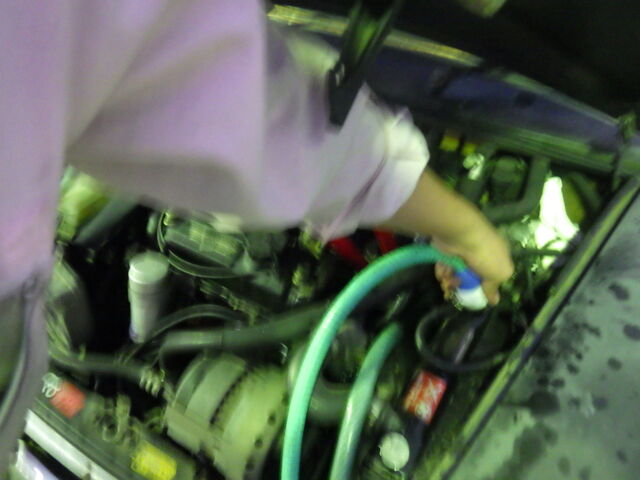 作業前にヒーターコアの漏れチェック。漏れはありませんでした。