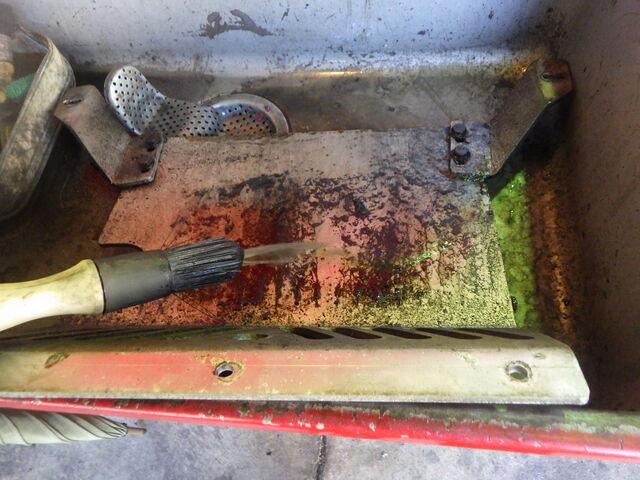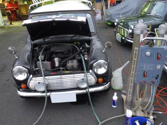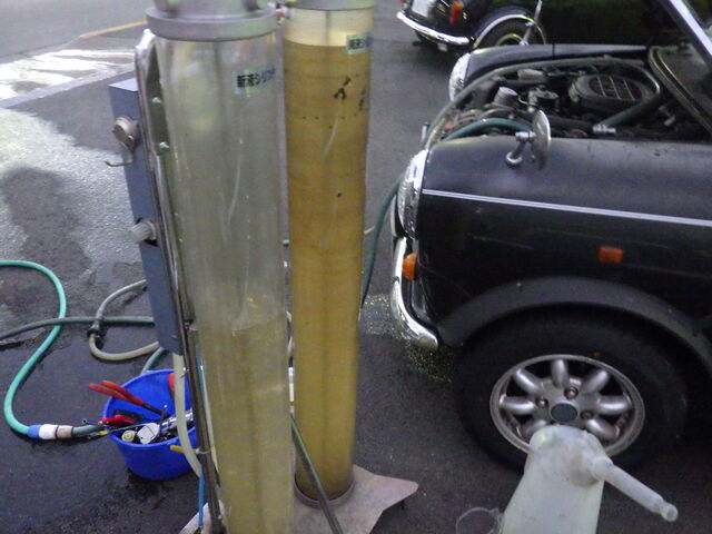 ホースを入れ替えてラジエーターとヒーターコアを逆流吸い出し。こちらも汚れが溜まっていました。