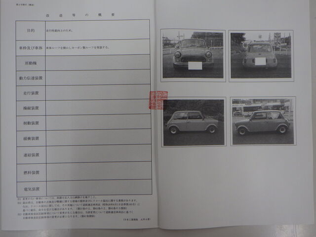地元のMINI屋さんで公認車検(ルーフ交換・定員2名)取ってもらう予定です。。