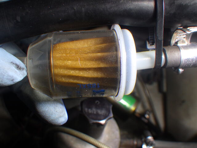 原因を調べると、燃料フィルターにガソリンが来ていません。
