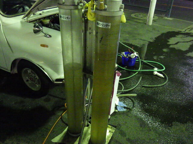エンジン内のクーラントをすすぎだしました。