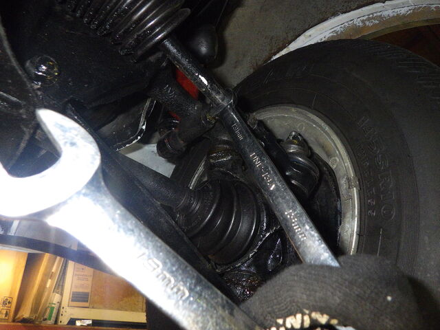 しかし、ロックtoロックを調整したのでハンドルセンターがくるってしまいましたのでこちらはタイロッドで調整します。