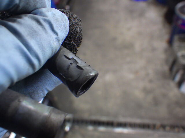 幸いカチカチに固くなっていなかったので腐食した部分を除去します。