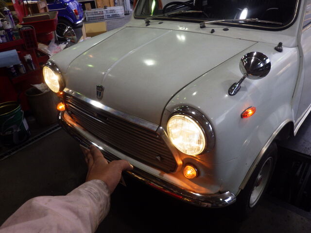 右のヘッドランプが光軸出るのか不安です。