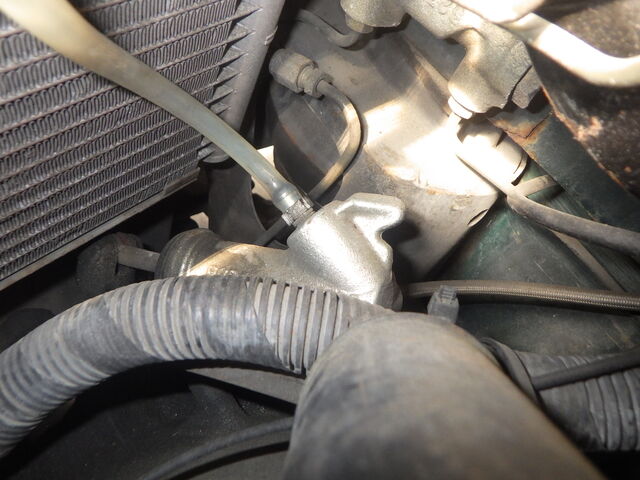しばらくしてラジエーターに勢いよくクーラントが流れ込んできました。このときの温度は90℃でした。サーモスタッドの開弁もよいですね。
