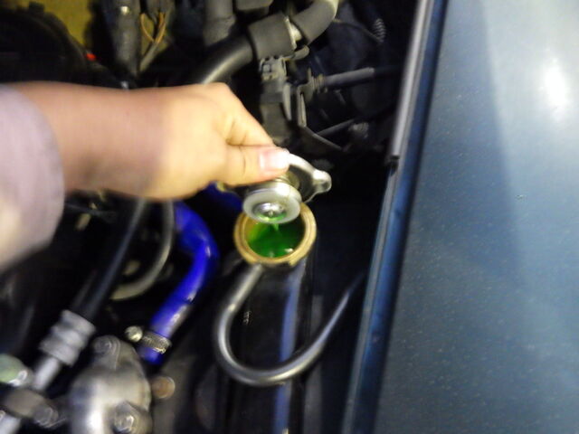 ラジエーターに洗浄剤を投入。