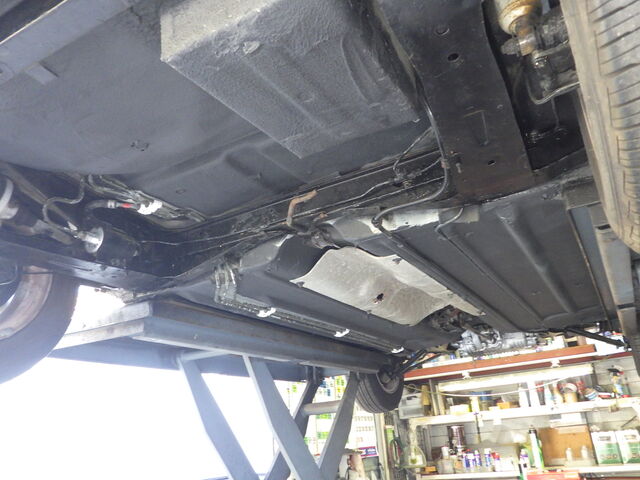 まずは下回りの洗浄。高圧洗浄機で汚れを流します。