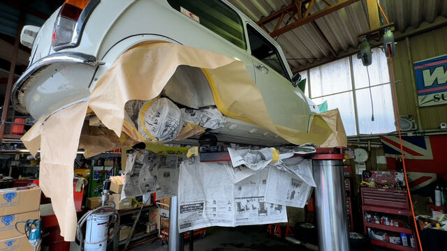 ノックスドールが余計なところにつかないよう下回りをしっかりと養生します。