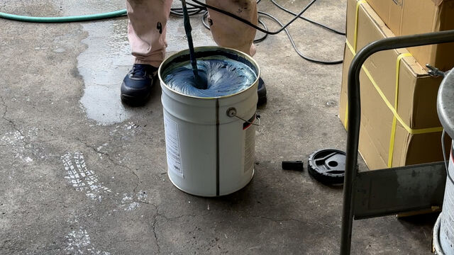 塗り終わりました。塗った直後は青いですが硬化するにつれて黒くなっていきます。