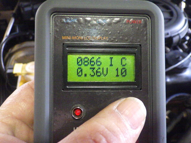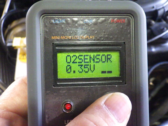 O2 SENSOR - O2センサーの電圧およびその状態を表示。アイドリング時は0.4V以下(リーン)~0.6V以上(リッチ)を常に上下しています。