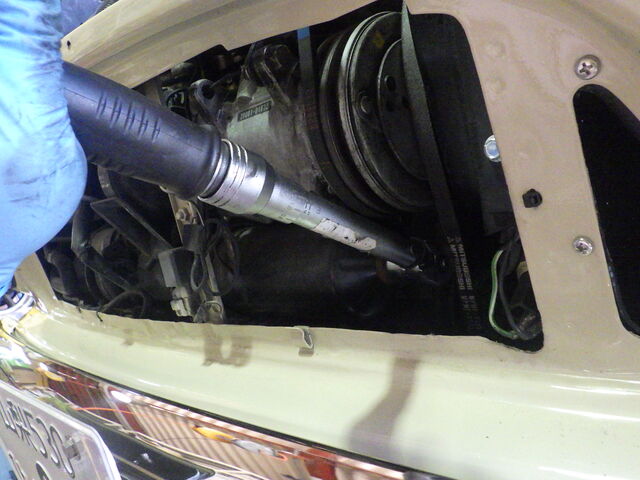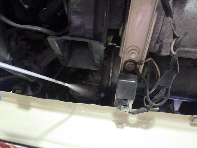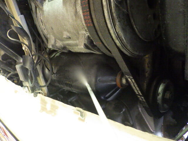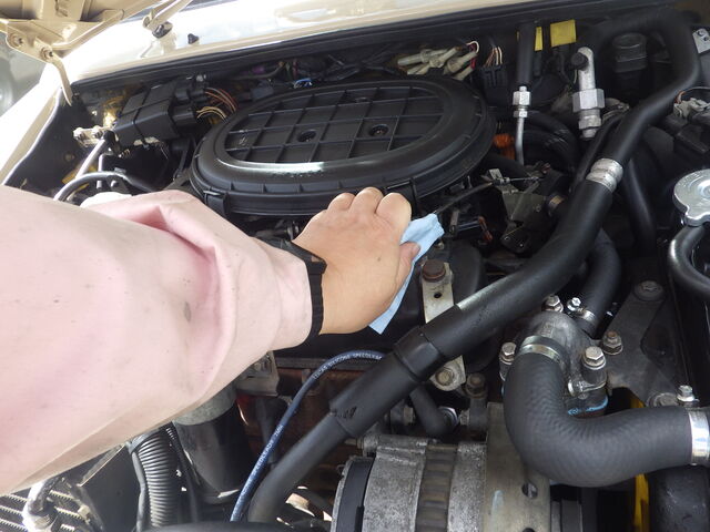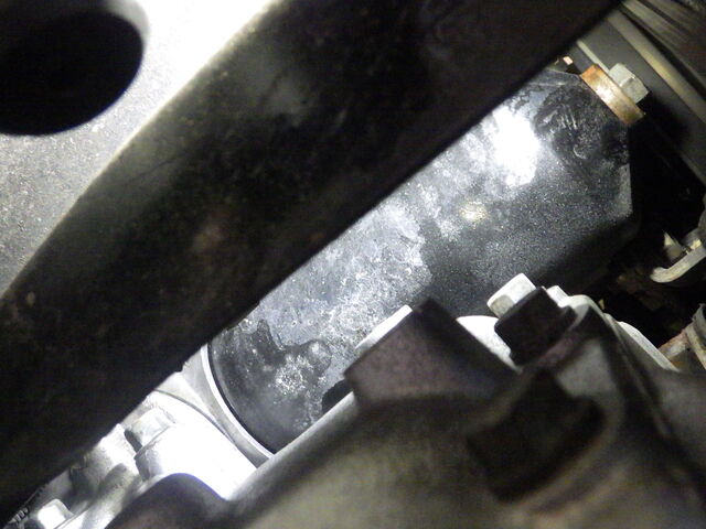 ブロック裏側の燃料ポンプ取付部のブランキングプレート部に薄っすらオイル滲みがありました。
