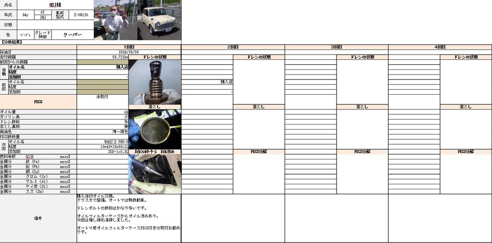 今回が初オイル交換でしたのでオイルカルテを作りました。