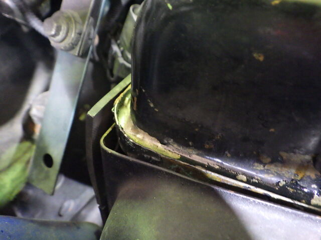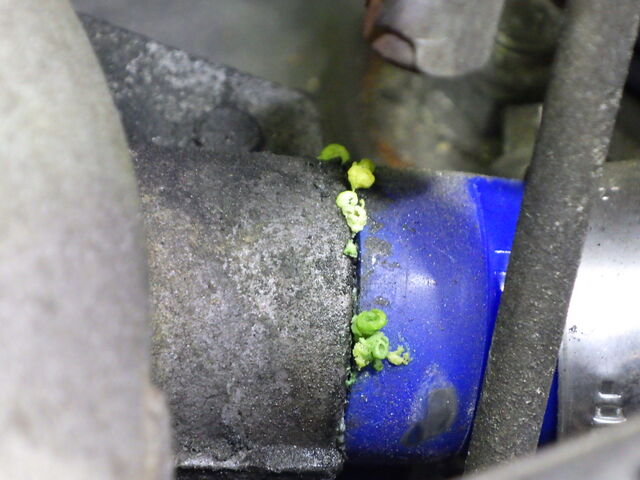 ラジエターアッパータンクの溝に漏れ跡がありますがキャップからの漏れかもしれません