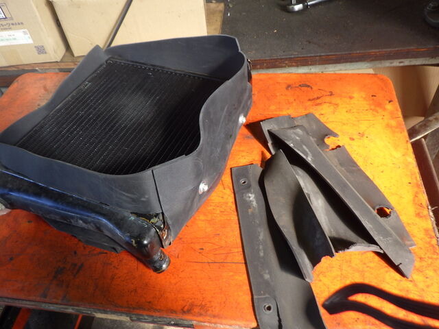 ラジエターの周りを囲うゴムのストーンガードが切れてます。。