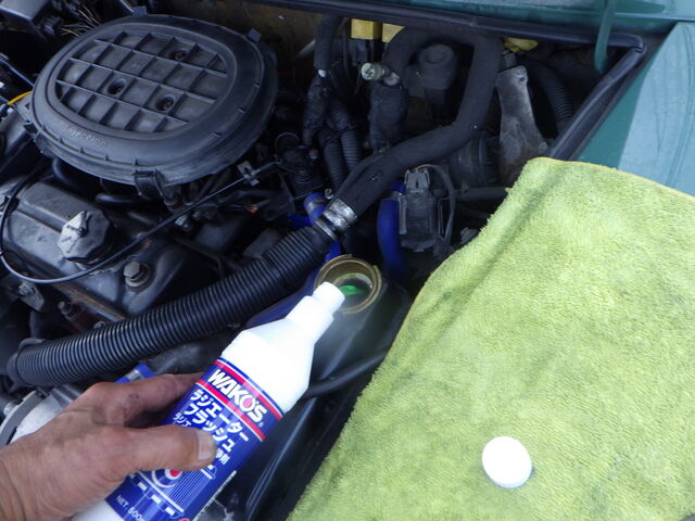 ラジエターフラッシュ入れてエンジン始動で洗浄開始。。。