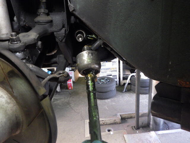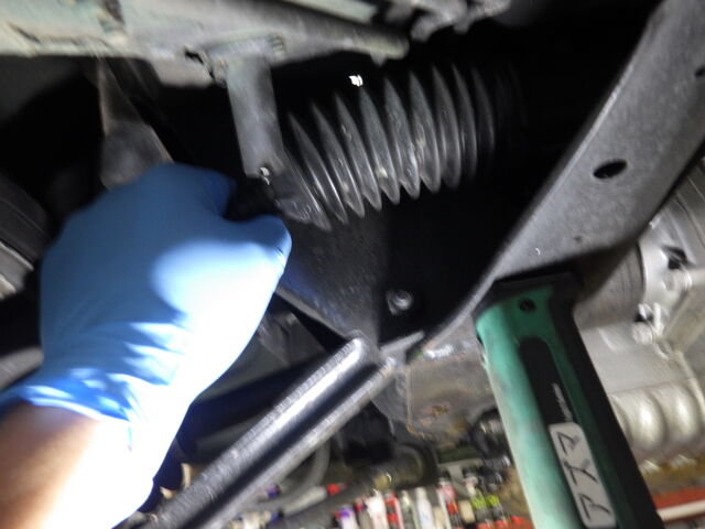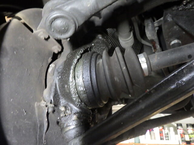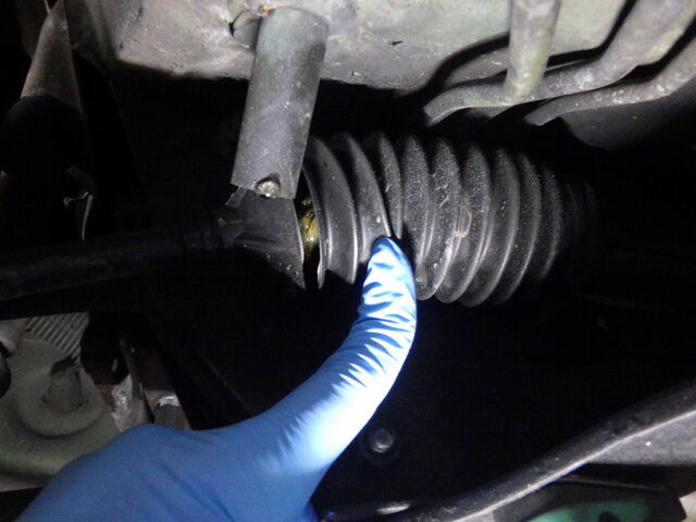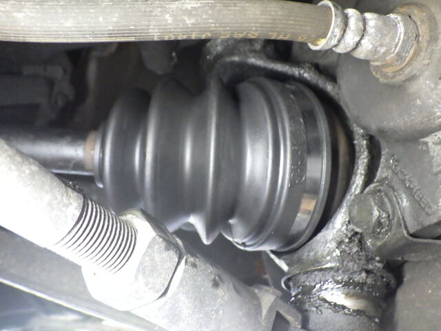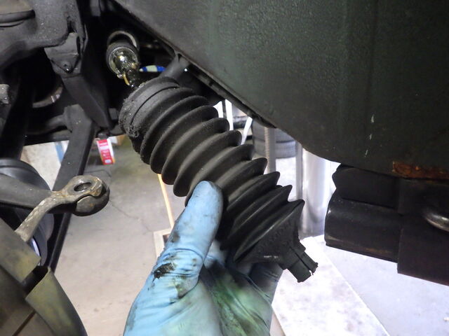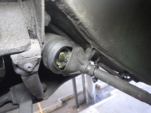左のドラシャアウターからグリスが漏れています。車検不適合なので交換します。