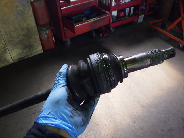 漏れてしまったドライブシャフトブーツを交換するためドライブシャフトを取り外し。