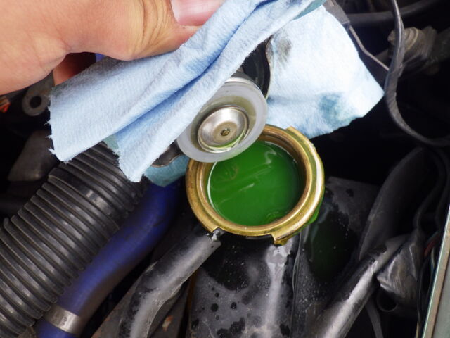 エンジンを吹かすとラジエターに勢いよく流れ込んでます。。。
