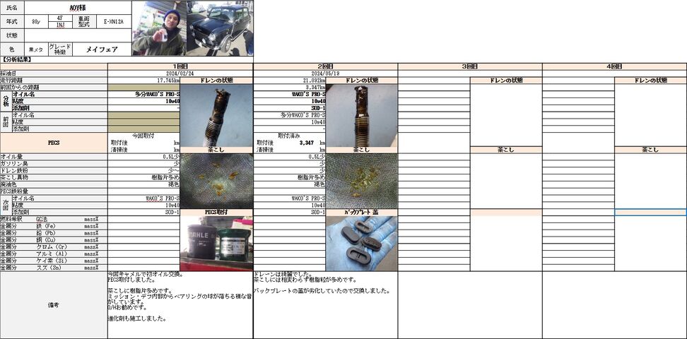 今回もオイルカルテに写真付きで追記しておきました(`・ω・´)ゞ