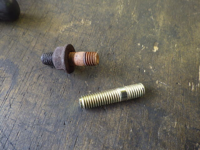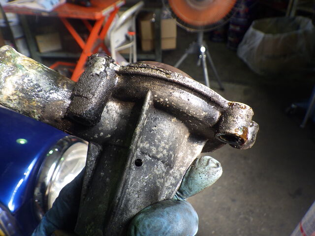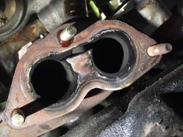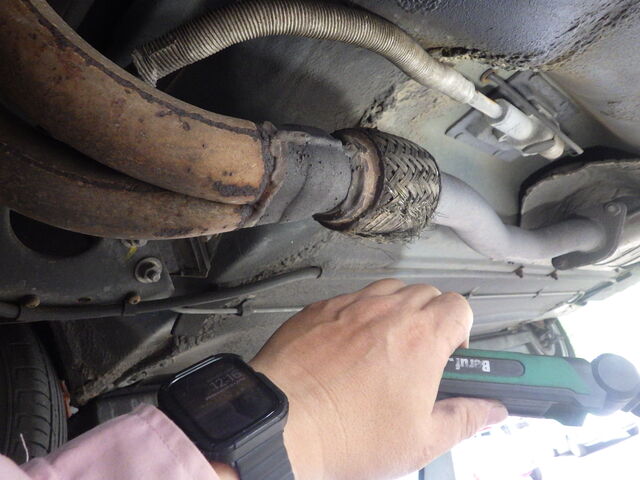 エキゾーストマニホールドに刺さっているダウンパイプを留めるボルト。