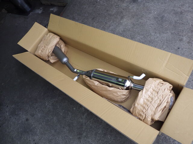 純正タイプのステンレスマフラーの到着が遅れていましてね・・・