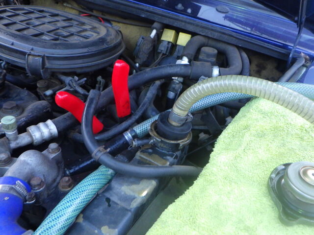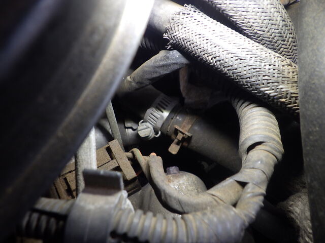 ラジエーターアッパーステーのグロメットと古くなると割れてしまうヒータージョイントパイプも金属製に交換します。