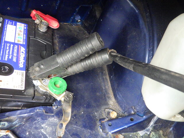 エンジンブロックからバッテリーマイナス端子まで直接アースとってエンジン掛けてみます。