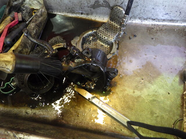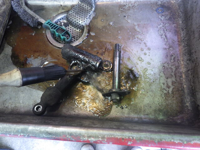 フロントブレーキキャリパーはオーバーホールして新しいピストンを装着します。