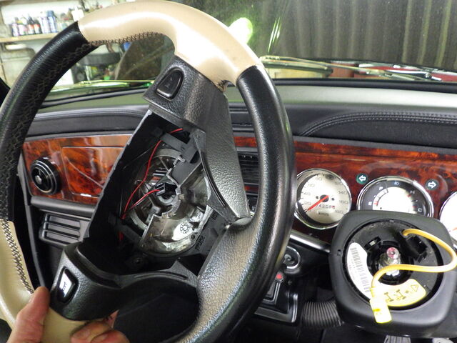 クラッシュパッドは革巻きを採用。。。ウッドパネルも交換しました。