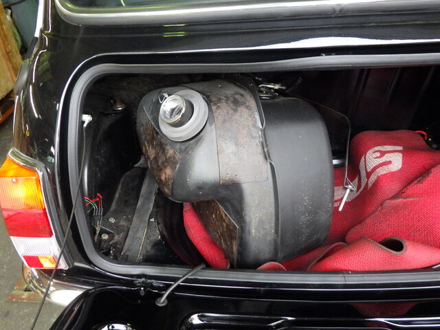 左リアの足回り交換のため燃料タンクを一旦取り外し。