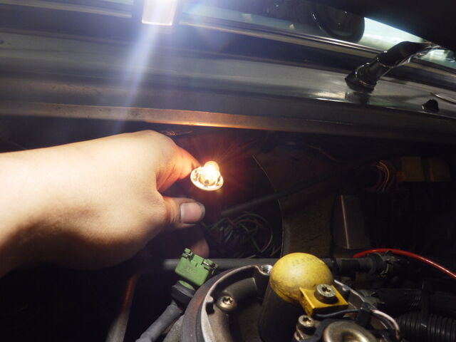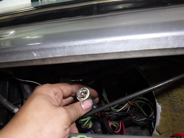 ランプを外して点検。電球は問題ありませんでした。どうやらここからオルタネーター側につながる配線が断線しているようです。