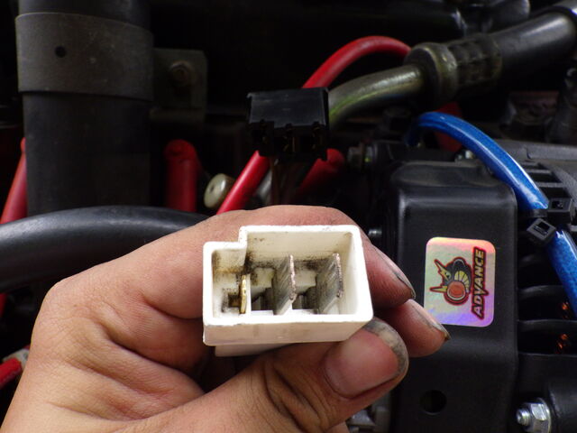 オルタネーターのカプラーからチェック。焼けや腐食はありません