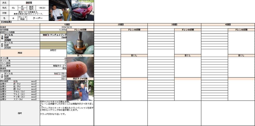 今回初のオイル交換でしたのでオイルカルテを作りました。