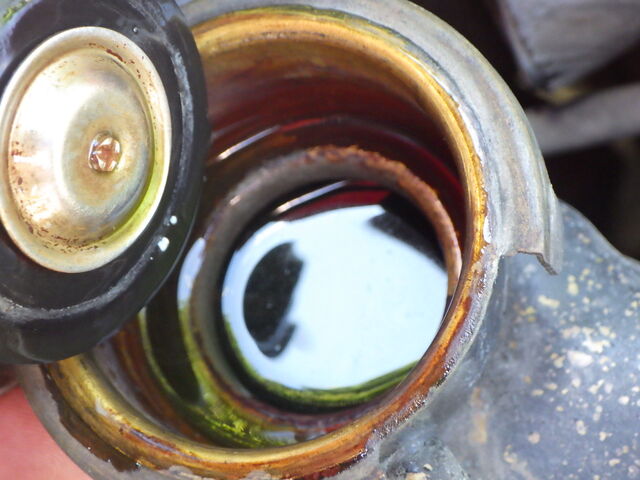 ラジエーターの冷却水量okですが・・・だいぶ冷却水が古そうです。