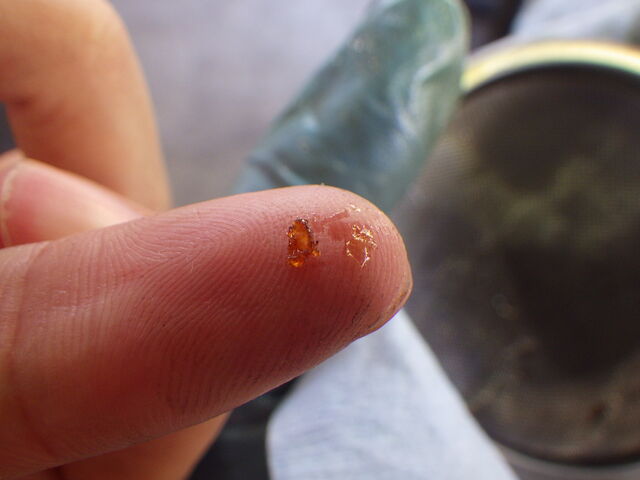 茶こしには樹脂の粒が少々。