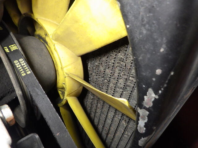 ラジエーターのフィンが潰れているのと、クーリングファンが表裏逆に装着されているのも気になります。