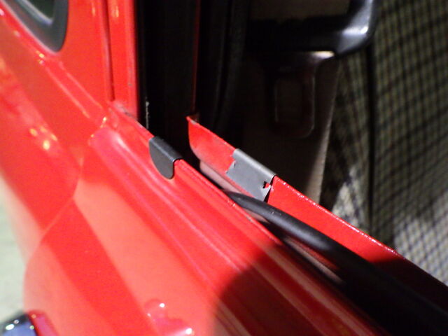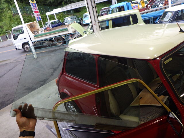 右の窓ガラスが斜めになって上まで上がらなくなっちゃったんで手で持ち上げて締めてきたよ。。。