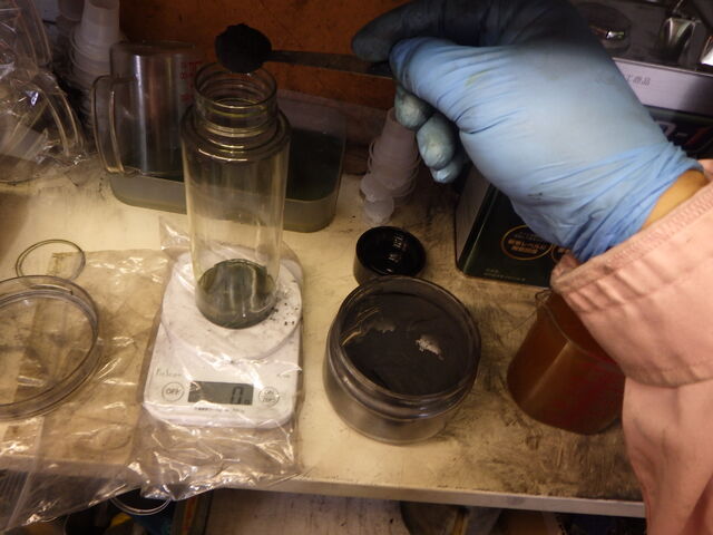 モリブデンの入った容器にオイル注入。
