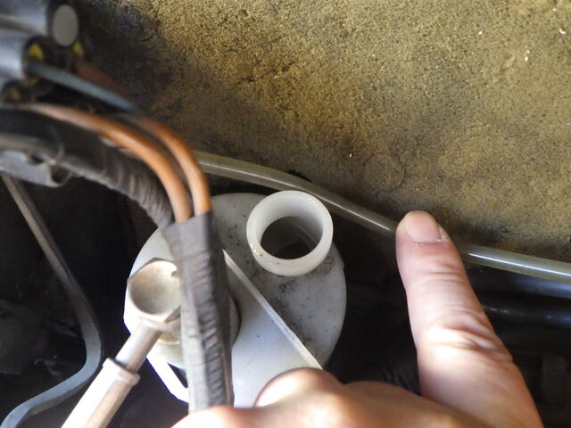 このとき回転を上げても流れ込んでこないのでサーモスタットの密閉は良好です。