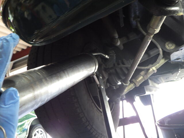 次にバイパスホースをクリップで止めてヒーターコアから逆流で吸い出します