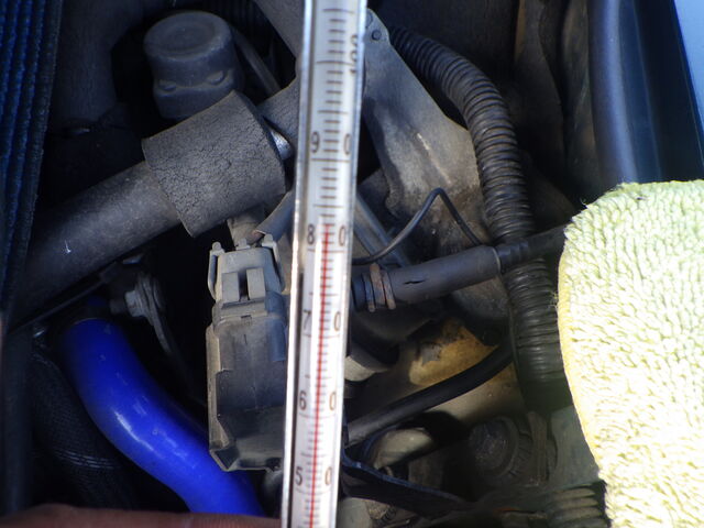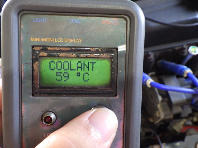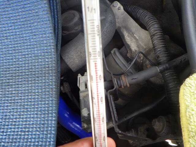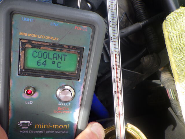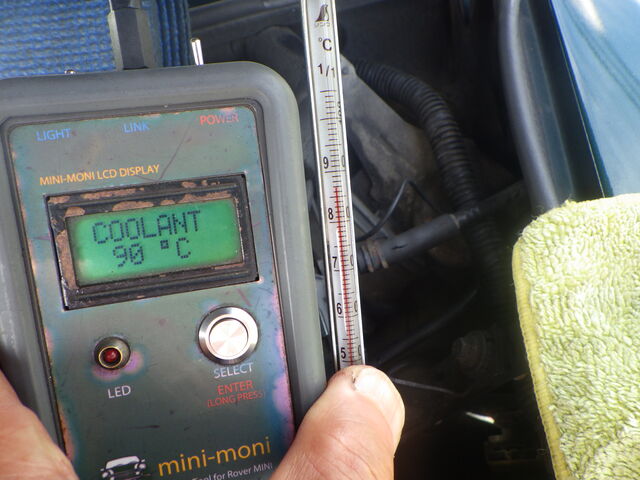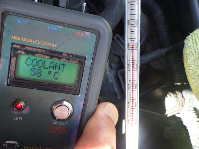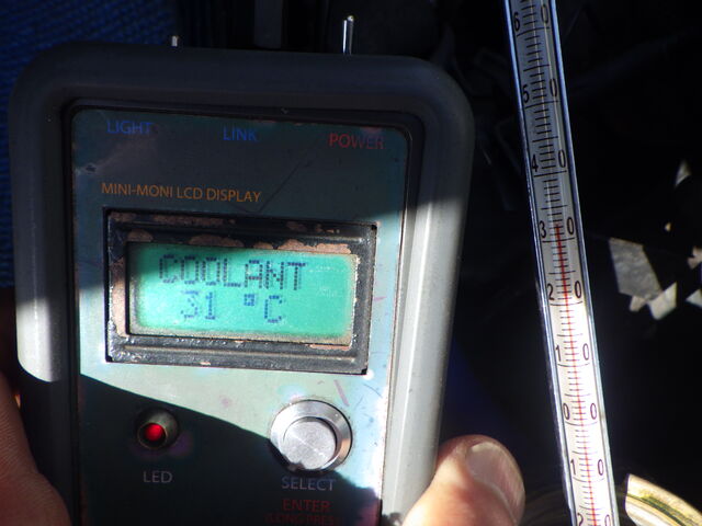 ラジエターに挿した温度計とミニモニで表示される水温センサーの温度を比較していきます