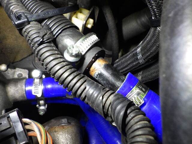 ヒーターバルブが無いのでヒーターに水が回る分だけ水温上昇が遅いのでホースクリップでヒーターへの流量を減らして水温上昇を早めます。。