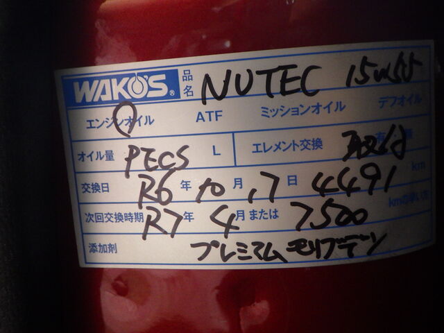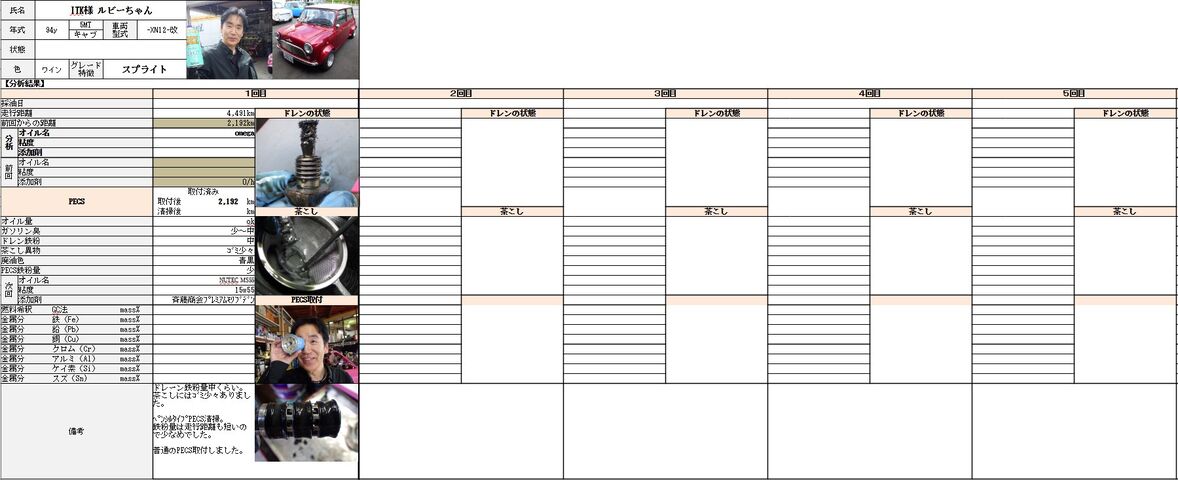 今回ルビーちゃんは初めてのオイル交換だったのでオイルカルテを作りました。