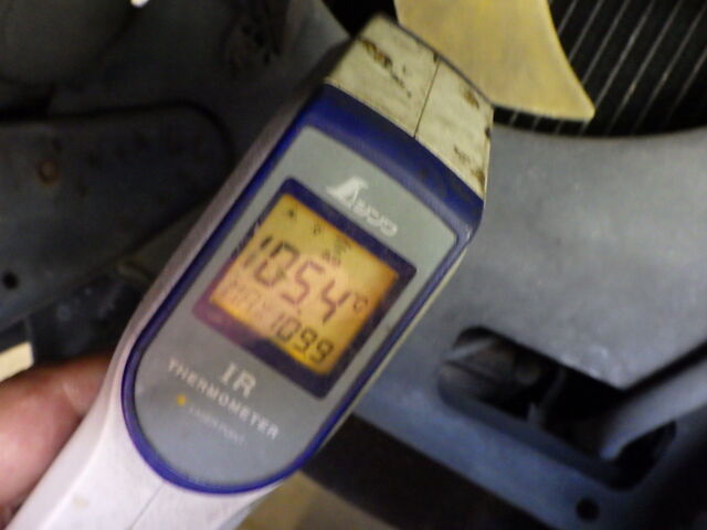 ラジエーター下部を非接触タイプの温度計で計ってみると・・・