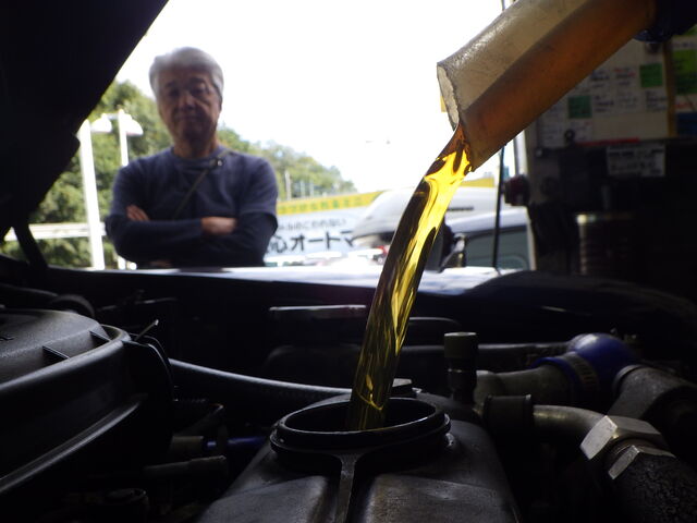向こうでTSM様がおっかない顔してみていますが気にせずオイル注入(笑)