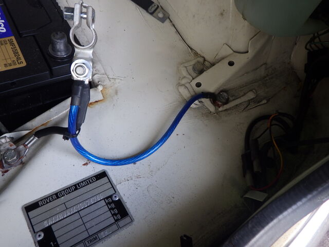 オルタネーターとバッテリーのアース側に簡易アース線を装着して電力を安定供給できるようにします。